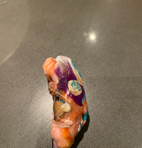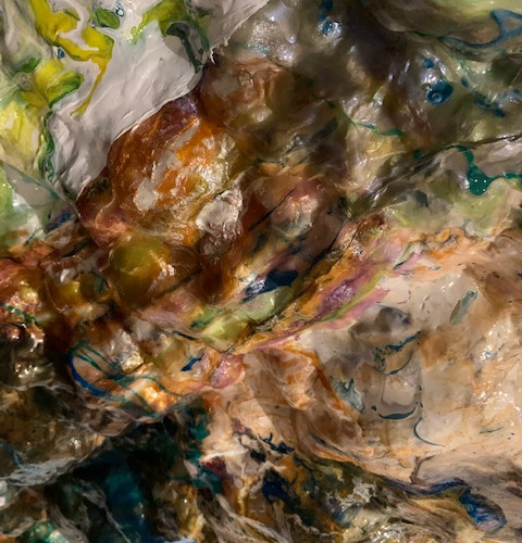I created several pours, two on canvas, one on cake shape, two on 'rocks', a chrysalis, a painting without a base and a large (190cm x 60cm) pain tablet.