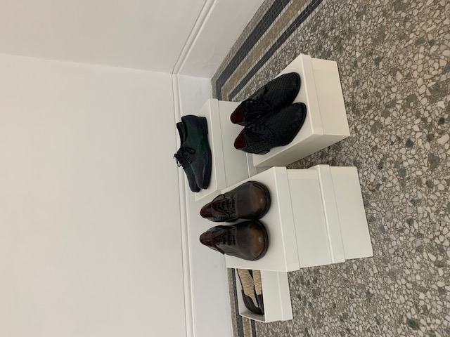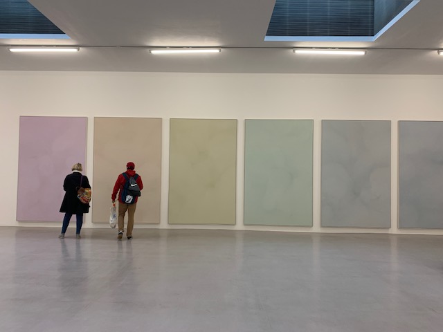 The second venture was to Camden Arts Centre, this was interesting. Telegraph poles, tiles, mosaic, water & copper, handbag shoes, doors, jewellery and pigment made of money. Now this last one I must tell you about, I found it incredible. It was this large large canvases made up of one pale tone. It looked like some art like Rothko but plainer as if attempting to be chic. I like it instantly but there was no wow factor. The colours were pretty that was all. After reading about it, it turns out he had made the pigment form € notes. Each colour had been made by grinding the notes up €5 for one canvas €500 dollar notes for another and so forth. Isn’t it curious the pale colours in contrast to greed. the the way the colours them selves absorb us just as a like do money would but in a different way. On the opposite wall was canvas the same size but this one was grey. On closer inspection elements of notes could be seen, security marks and stamps, shiny parts and writing.